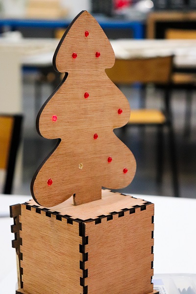 🎄 L'Atelier électronique spécial noël de l'équipe du Humanlab : les participants ont construit un petit sapin de noël brillant de mille feux !