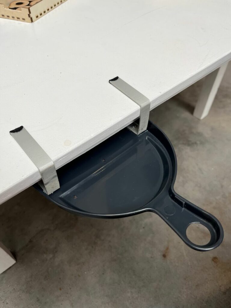 En adaptant, une pelle à poussière du commerce qui pourra être facilement démontable et utilisable sur plusieurs tables.